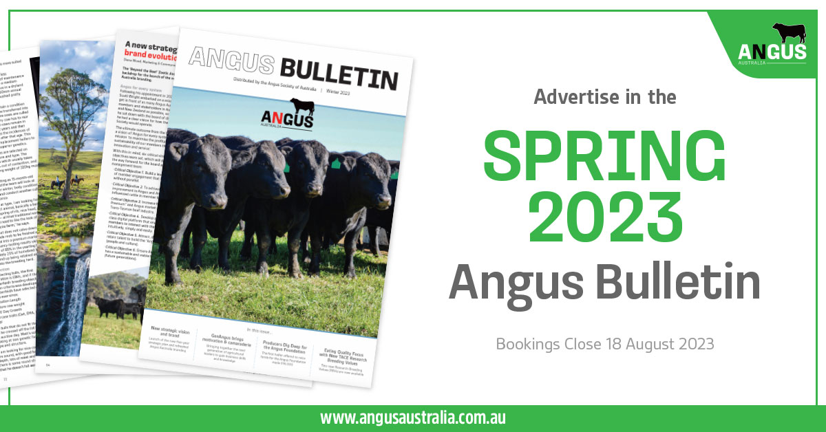 ADVERTISING BOOKINGS FOR THE SPRING EDITION OF THE ANGUS BULLETIN CLOSE FRIDAY 18 AUGUST 2023.