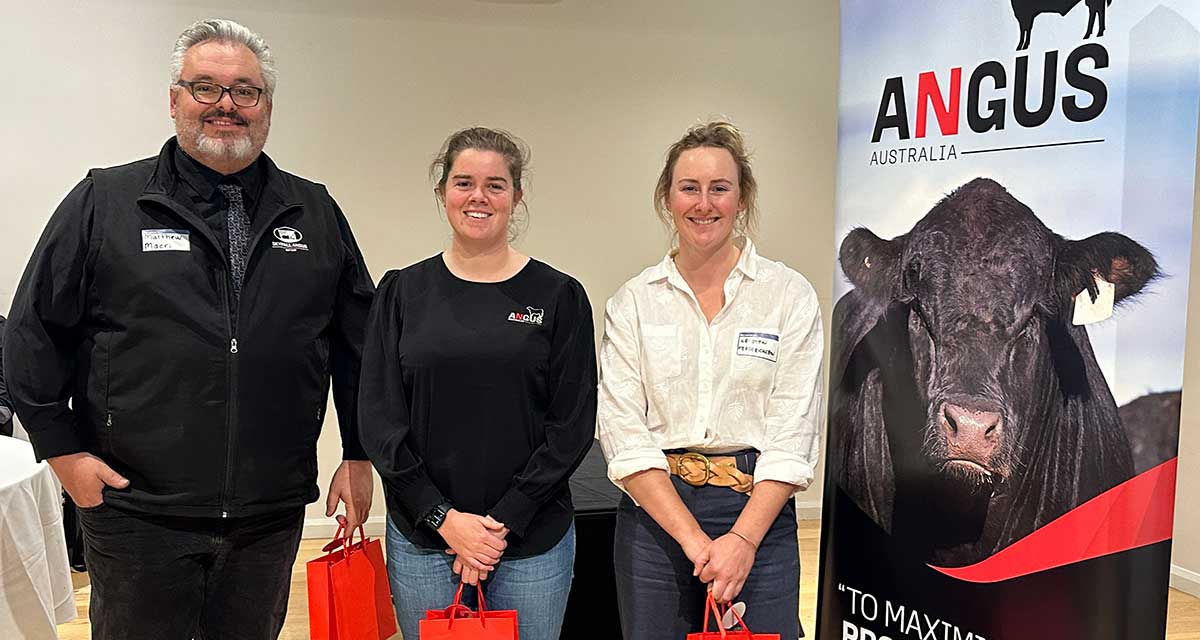 Feature Image: Angus Australia NSW Chair – Matt Macri, Angus Australia Acting Extension Manager – Nancy Crawsahw, KB Livestock Services – Kristen Fredericksen