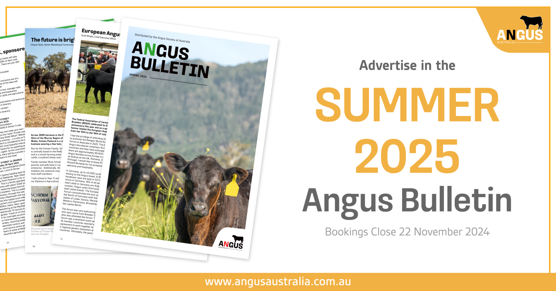 Bookings close Monday November 22nd for advertising in the Summer 2025 Angus Bulletin.