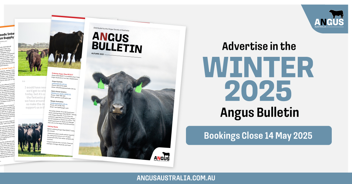 Bookings close Wednesday May 14th for advertising in the Winter 2025 Angus Bulletin.