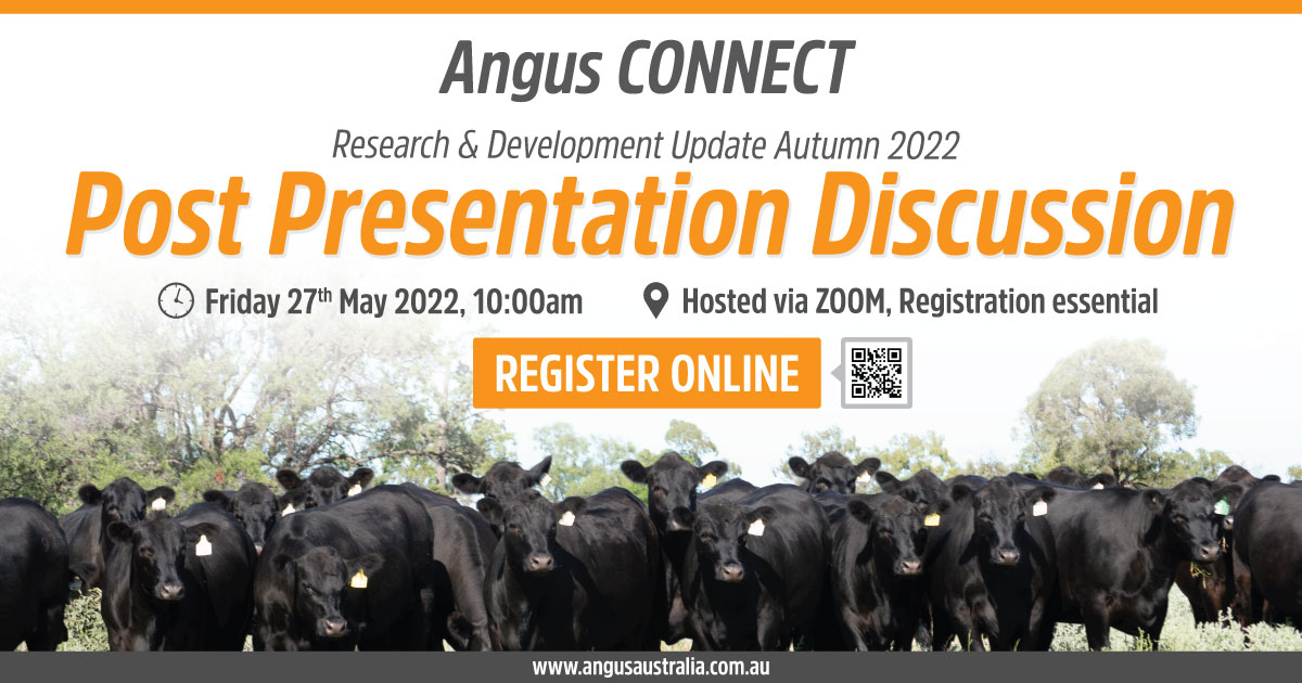 Angus CONNECT – Autumn 2022 will be followed by a facilitated online discussion session on May 27th whereby interested participants will have the opportunity to ask questions of presenters and provide feedback to Angus Australia and research staff on the content of the presentations.