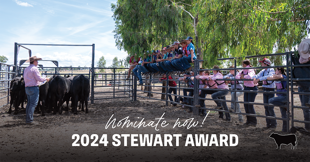 Angus Australia is pleased to announce that nominations are now open for the 2024 Stewart Award! We invite members to nominate individuals who have made exceptional voluntary contributions to the Angus Youth Program, helping to foster the development and success of future generations in the Angus and beef industry.