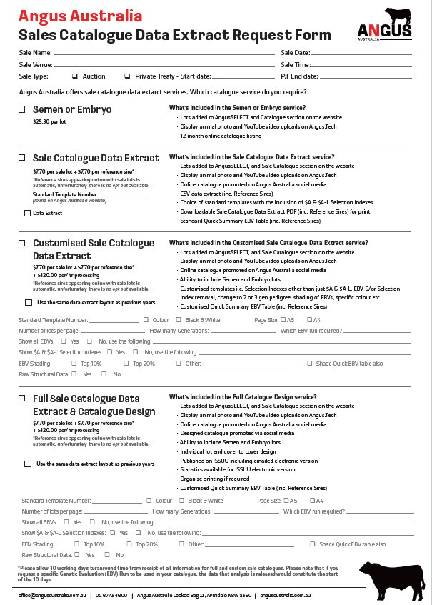 Email the completed spreadsheet and signed Catalogue Request form to catalogues@angusaustralia.com.au