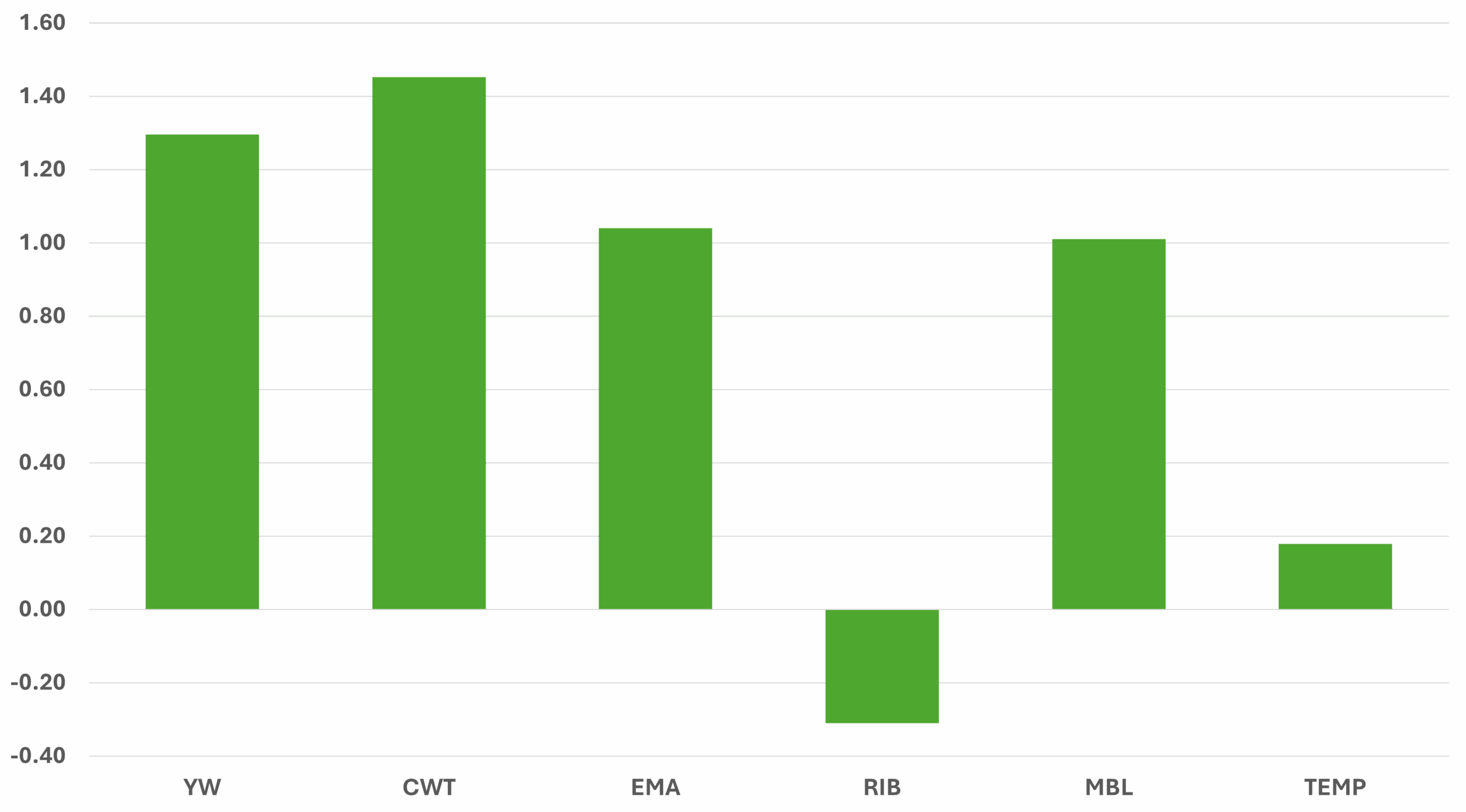 The selection advantage of steers selected using the Angus Steer Value is shown in the below graph. The selection advantage is calculated by ranking all animals currently tested via SteerSELECT™ on Angus Steer Value, and comparing the average genomic predictions of the steers in the top 10% with the average genomic predictions of all steers available for selection.