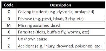 Record the date and reason for any female removed from the herd, particularly those present at the start of joining that are no longer within the herd by the time of the subsequent calving. The fate/disposal code information is used to determine whether females that have a joining record but no subsequent calf should be penalised for being “culled for infertility” or not penalised because they were culled for other reasons e.g. structure, performance etc. In the future, this information may also be used as part of the calculation of a Female Longevity EBV.