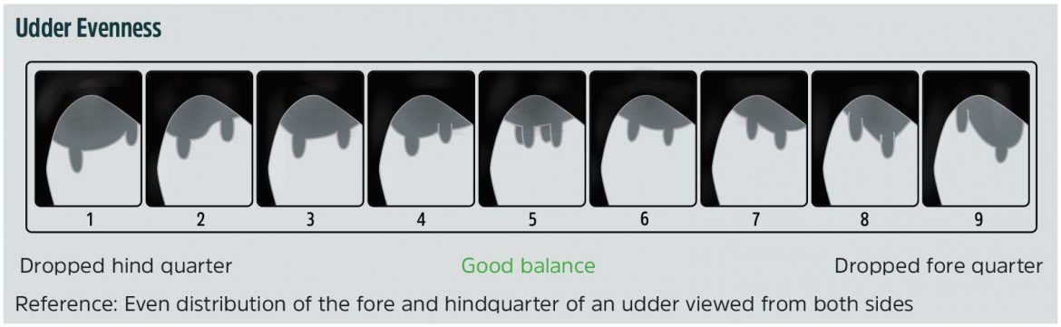 Mature cow udder scores assess the structural soundness of the udder on mature females, and are measured as visual scores.