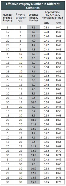 The number of effective progeny per sire (EPN) takes into account not only the number of progeny by each sire, but how useful the information collected on those progeny are for genetic evaluation.