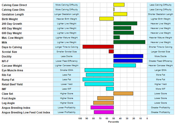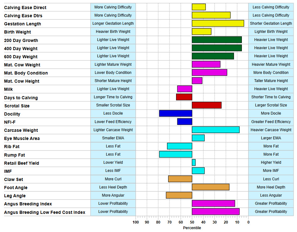 It is important to note that while for the majority of EBVs it is generally considered more desirable to rank higher in the percentile (i.e. on the right-hand side of the graph), this is not always the case. importantly, the optimum EBVs will depend on your individual breeding objective(s), and the direction in which you are trying to move the genetic level of your own herd. For example, a higher percentile for Mature Cow Weight indicates heavier cows at 5 years of age due to genetics. For those producers trying to moderate the mature cow weight of their herd, this may not be desirable.