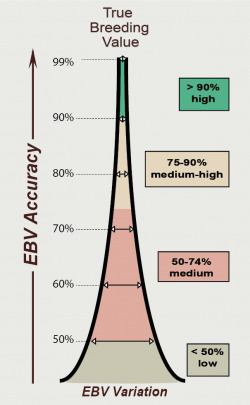 An accuracy value is published in association with each EBV, which is usually displayed as a percentage value immediately below the EBV.