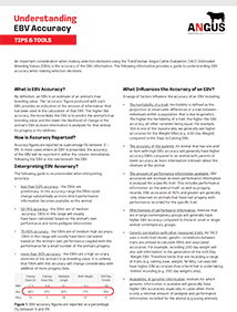 The accuracy value provides an indication of the reliability of the EBV in estimating the animal’s genetics (or true breeding value), and is an indication of the amount of information that has been used in the calculation of the EBV.