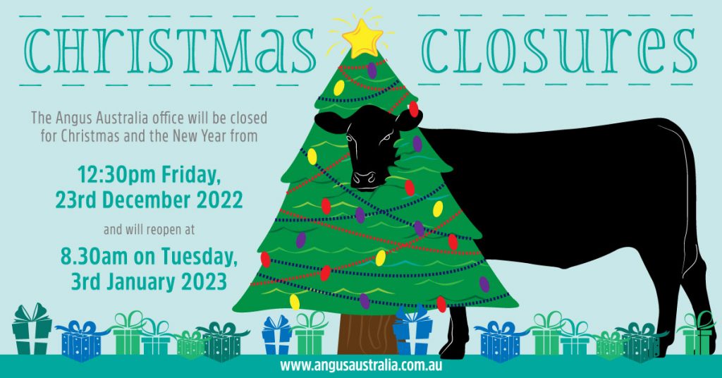 Angus Australia would like to remind members that the office will be close 12:30pm Friday 23rd December and reopen 8.30am on Tuesday 3rd January 2022 for the holiday season.