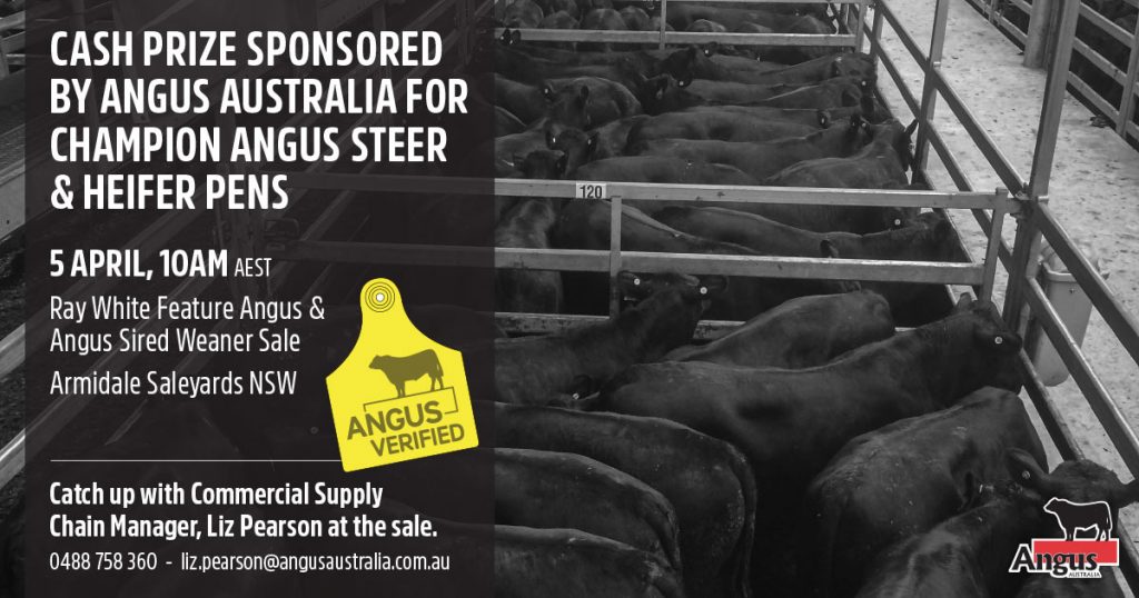 Angus Australia will be offering a cash prize of $150.00 for the Champion pen of Angus steers and Champion pen of Angus heifers.