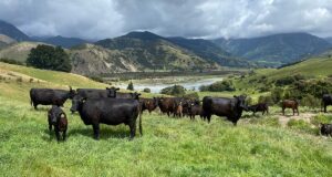 Feature image: Ben and Caroline Murray from Woodbank Angus, Kaikoura are pictured with Alex Ferguson (centre).