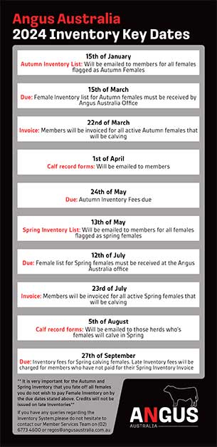 - 15th of March: Due – Female Inventory list for Autumn females must be received by Angus Australia Office
