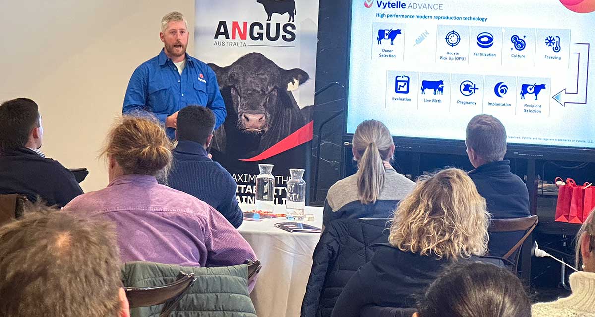 The day began with registration and afternoon tea, providing attendees with an opportunity to mingle and settle in. The first session commenced at 2 pm with a series of compelling presentations. Scott Wright of Angus Australia laid out the organisation’s ambitious 5-year plan, emphasising strategic initiatives designed to propel the Angus breed forward. Ed Hordern from Vytelle IVF followed with insights into advanced reproductive technologies, showcasing how these innovations are revolutionising Angus breeding practices. Mr Lachlan Ayoub from Zoetis presented the Immune Ready Guidelines and initiatives that help Maximise productivity and minimise disease transfer through the supply chain. Dr Gerard Hammond from Angus Tech concluded the session with a deep dive into the latest technological advancements in the field, highlighting tools and techniques that are transforming the industry.