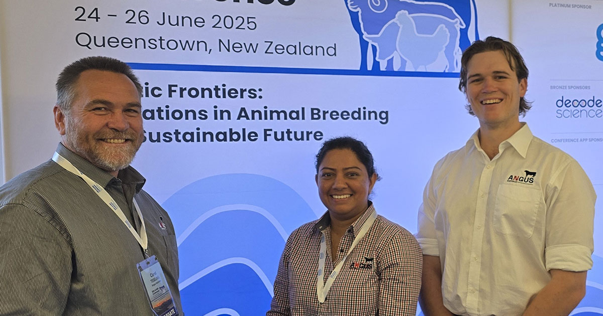 Feature Image: Carel Teseling – Angus Australia Chief Operating Officer, Malshani Samaraweera – Angus Australia Geneticist and Liam Mowbray – Angus Australia R&D Specialist at AAABG 2025