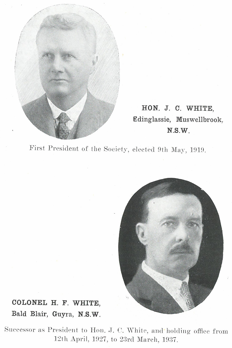 JC White’s nephew, Colonel Harold F (HF) White was instated as President of the society after the passing of his uncle. Hailing from Bald Blair, Colonel White become the longest serving President, serving in the role for a decade.