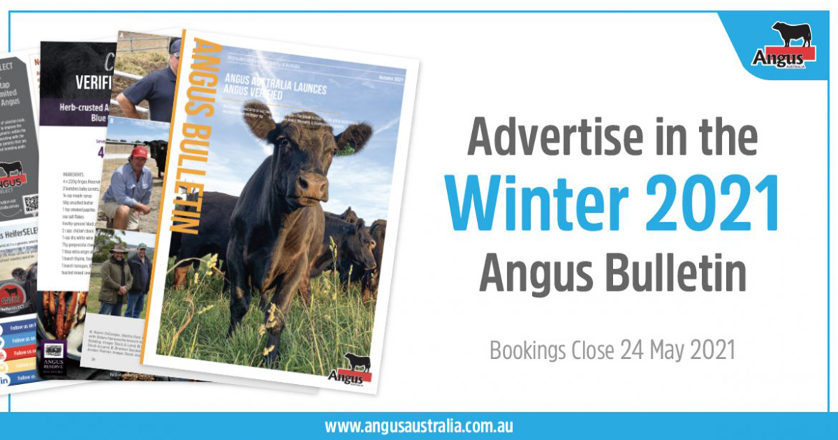 Bookings close May 24th, 2021 for advertising in the 2021 Angus Australia Winter Bulletin.