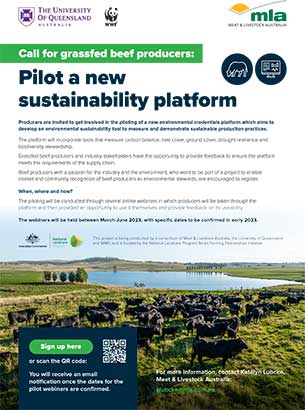 This project is being conducted by a consortium of Meat & Livestock Australia, the University of Queensland and WWF, and is funded by the National Landcare Program Smart Farming Partnerships initiative.