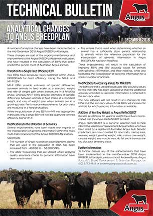 A number of analytical changes have been implemented in the Mid-December 2018 Angus BREEDPLAN analysis. These analytical enhancements are part of the annual maintenance and improvement to the Angus BREEDPLAN genetic evaluation undertaken in December each year, and in most cases, are not expected to have any significant effect on the EBV ranking of Angus animals.
