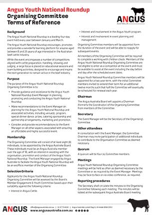 The Angus Youth Roundup Organising Committee provides guidance and assistance to the Angus Youth Roundup Coordinator in planning, promoting and conducting the 2025 Angus Youth National Roundup.