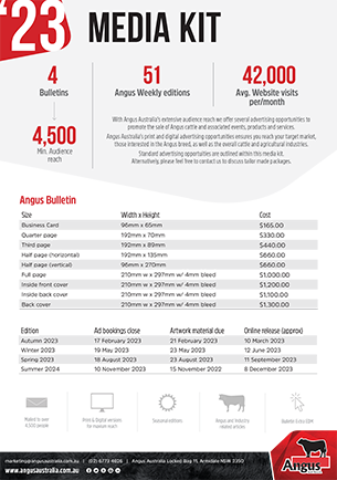 The 2023 Media Kit is now available and outlines the advertising opportunities, including some new options, that are available to members with Angus Australia.