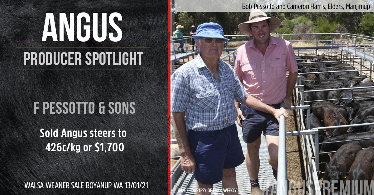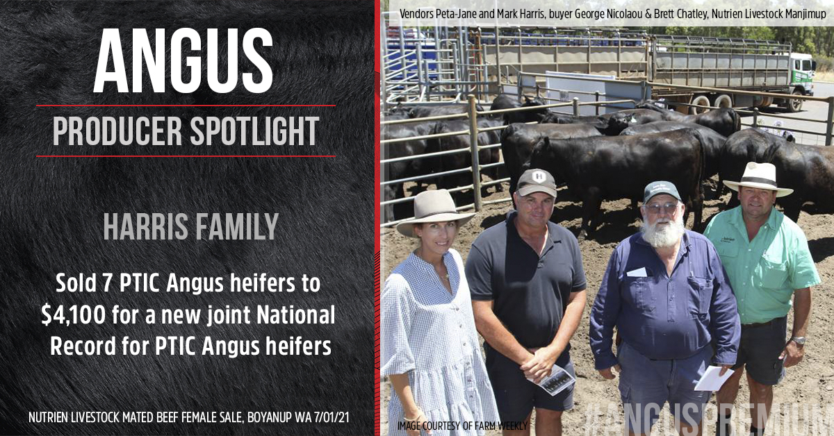 2021 kicked off with a bang with weaner sales around the country bringing in excellent results for Angus cattle around the country. Records even fell, with GW & J Oliver, Kirup and the Harris Family, Treeton Lake taking a new joint National Record for PTIC Angus heifers with their offerings, making $4,100 tops at the Nutrien Livestock Mated Beef Female sale, Boyanup WA on January 7th.