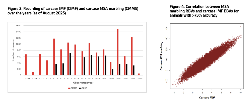 Both intramuscular fat percentage (IMF%) and MSA marbling score are economically important traits in Angus cattle, as they contribute to carcase value and influence eating quality through improved flavour, juiciness, and overall consumer satisfaction.