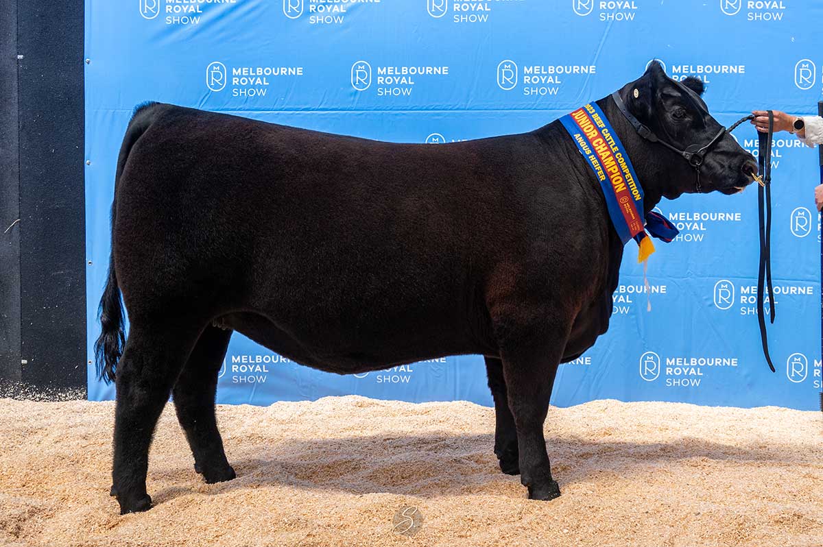 The Junior and Grand Champion Angus bull, Moorunga Raindance T25, exhibited by Moorunga Angus was crowned the Supreme Junior Champion Beef Breed Bull.