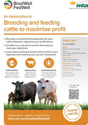 U8J Cattle Company is hosting a Meat & Livestock Australia BredWell FedWell workshop on 11 June 2024 – these full day interactive workshops work though breeding and feeding strategies designed to maximise profitability.