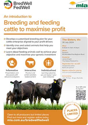 The Sisters Pastoral Company is hosting a Meat & Livestock Australia BredWell FedWell workshop on 30 July 2024 – these full day interactive workshops work though breeding and feeding strategies designed to maximise profitability.