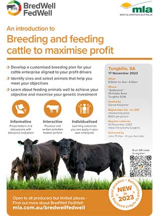 For more information on Meat & Livestock Australia’s BredWell FedWell Workshops www.mla.com.au/bredwellfedwell