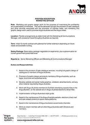 Angus Australia offers a fantastic opportunity to join our vibrant and creative marketing team as a Marketing Officer. This part-time role is offered as a 12-month contract with the potential for extension. The successful candidate will work with the Marketing & Communications team to promote Angus Australia and the Angus breed, while also delivering graphic design and marketing services to our large and diverse membership.