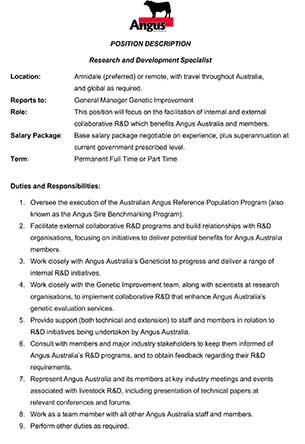Angus Australia is excited to offer two roles within our Genetic Improvement Business unit and invites expressions of interest for the roles of Research & Development Specialist and Genetic Evaluation Specialist.