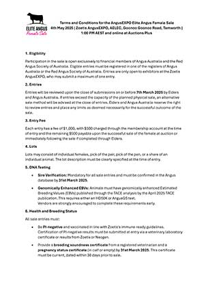 The Elite Angus Female Sale is set to take place during the Zoetis AngusEXPO on Sunday, 4th May 2025, from 1:00 PM AEST, at the Australian Equine and Livestock Events Centre (AELEC), Goonoo Goonoo Road, Tamworth NSW.