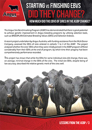 What was observed was that, despite the initial EBVs being of relatively low accuracy, there was very little change in the average EBVs of the sires. This clearly demonstrates that EBVs can be used with confidence when selecting young animals for use within a breeding program.