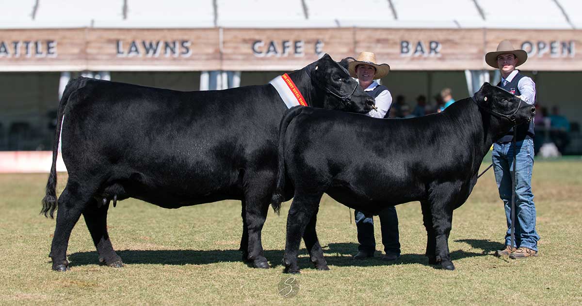 Senior and Grand Champion Angus female, DSK Tel Hot Stuff S116, exhibited by Angus Youth members, Jack and Sam Robson, JSR Livestock, Adelong NSW, rose to the top in the Urquart Trophy for Supreme Interbreed Exhibit.