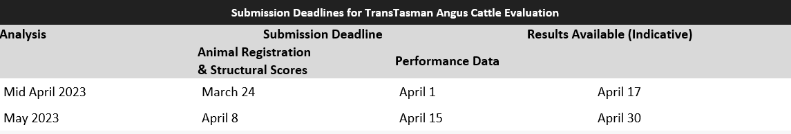 Please contact Angus Australia if you have any questions regarding these submission deadlines.