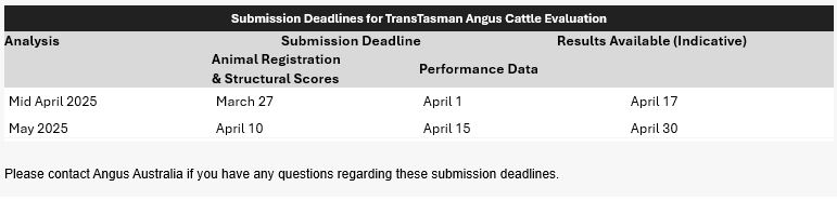 Angus Australia wishes to advise that the April 2025 TransTasman Angus Cattle Evaluation has been completed and updated EBVs are now available.
