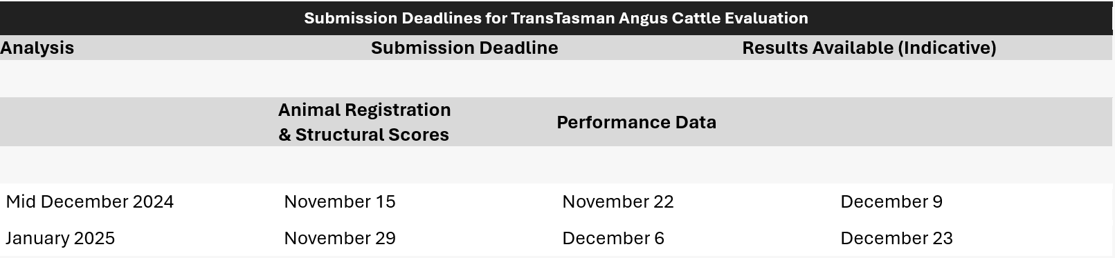 Please contact Angus Australia if you have any questions regarding these submission deadlines.