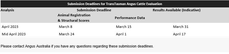 Please contact Angus Australia if you have any questions regarding these submission deadlines.