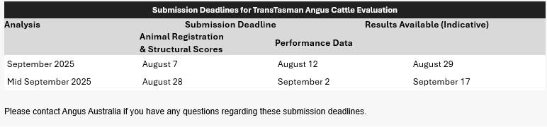 Angus Australia wishes to advise that the Mid August 2025 TransTasman Angus Cattle Evaluation has been completed and updated EBVs are now available.