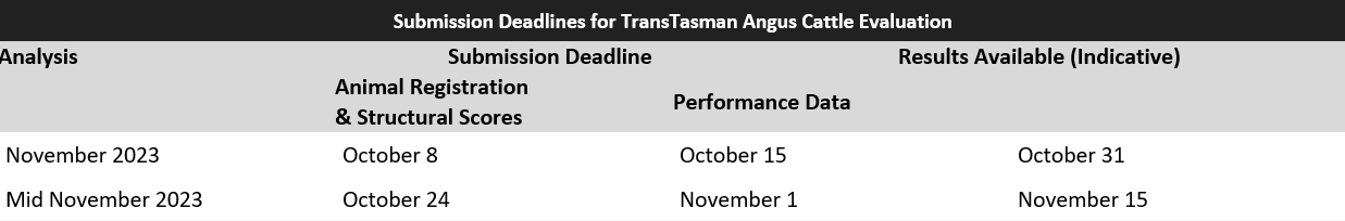 Please contact Angus Australia if you have any questions regarding these submission deadlines.