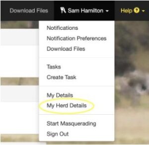 A drop box will appear, from there click on the ‘My Herd Details’.