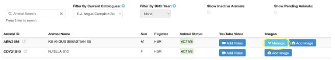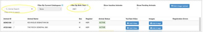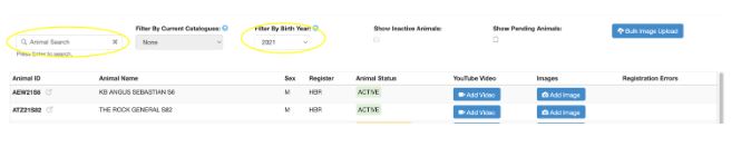 If you have specific animals that you wish to load images to you can use the ‘Filter by Birth Year’ option and use the Animal Search box to the left of the ‘Filter by Current Catalogues’.