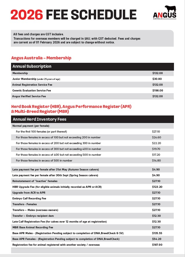 2026 Angus Australia Fee Schedule 1 Feb 2026