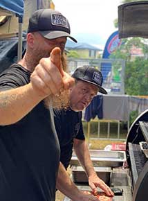 Pit Crew BBQ is Graeme “Big Red” Stockdale, Michael Dean and anyone who wants to come along for the ride. Well known for their very relaxed view about competition BBQ, these lads have just come off a Grand Champion finish at the inaugural Corndale Bootleg BBQ Bash. Big Red is head pit master at Lismore’s Stockpot Kitchen, and was recently inducted into the Australasian Barbecue Alliance hall of fame.